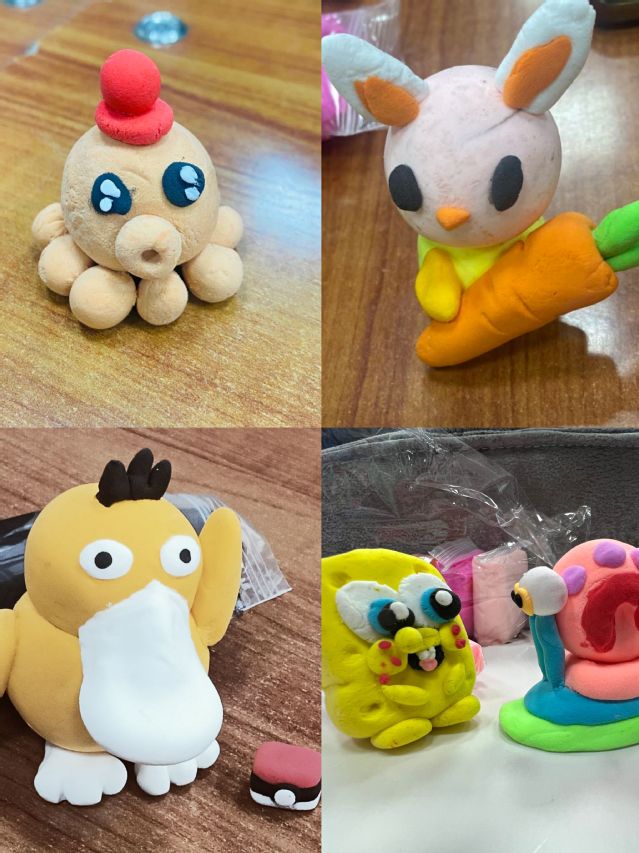 活动中,同学们伴着舒缓放松的音乐,跟随网上的超轻粘土视频教程,在逐步了解揉捏造的方法和技巧后,充分发挥出自己的想象力,通过一步步的揉、搓、捏、贴等动作,将一个个或可爱、或奇异的造型呈现出来,用小小的超轻粘土塑造出自己的内心世界。活动最后,每位同学都将自己的作品拍照上传至活动群相册,与大家一起分享自己内心中的美好。