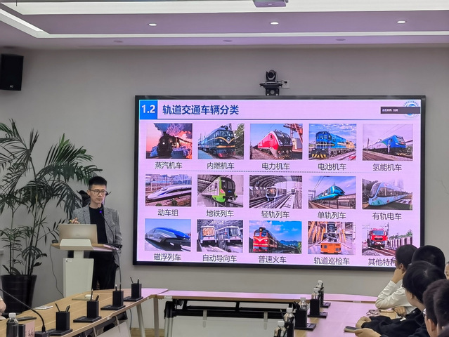 孙双成以“国家战略锚定方向、行业发展明晰路径、青年成长对接需求”为主线,系统回顾了中国轨道交通从1865年第一条铁路诞生至今的发展历程。他重点聚焦技术迭代的关键节点,生动讲述了我国轨道交通装备从蒸汽机车、内燃机车到电力机车、高速动车组,直至如今领跑世界的“复兴号”动车组和600公里高速磁浮列车的技术跨越,让学子深刻感知我国高端装备制造产业的崛起历程与民族工业自信。
